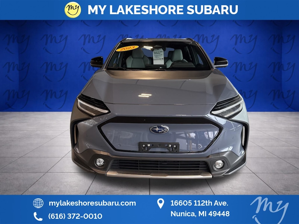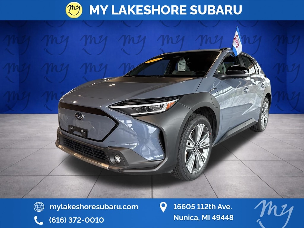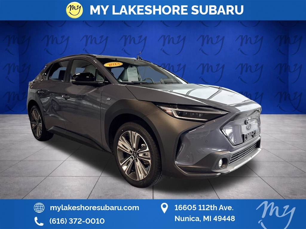 Solterra Limited, Harbor Mist Gray Pearl, *ALL WHEEL DRIVE*, *APPLE CARPLAY & ANDROID AUTO*, *BACKUP CAMERA*, *BLIND SPOT MONITORING*, *HEATED REAR Seats*, *HEATED STEERING WHEEL*, *LANE DEPARTURE WARNING*, *LEATHER HEATED POWER SEATS*. Harbor Mist Gray Pearl 2023 Subaru Solterra Limited AWD 1-Speed Automatic Electric Motor