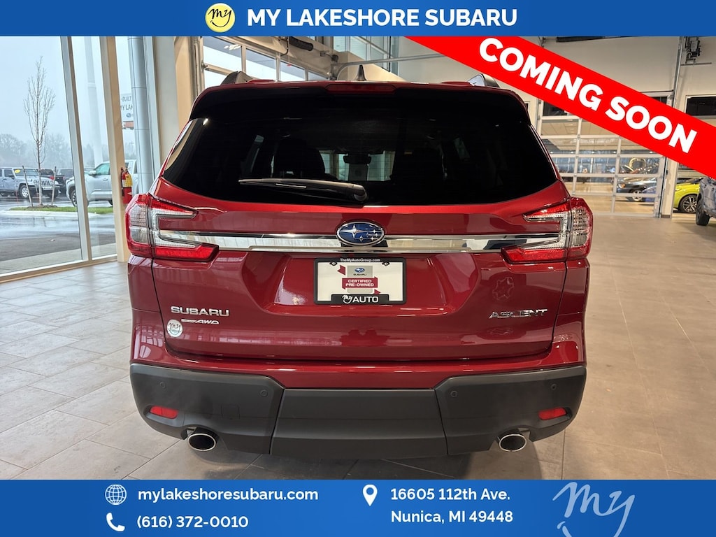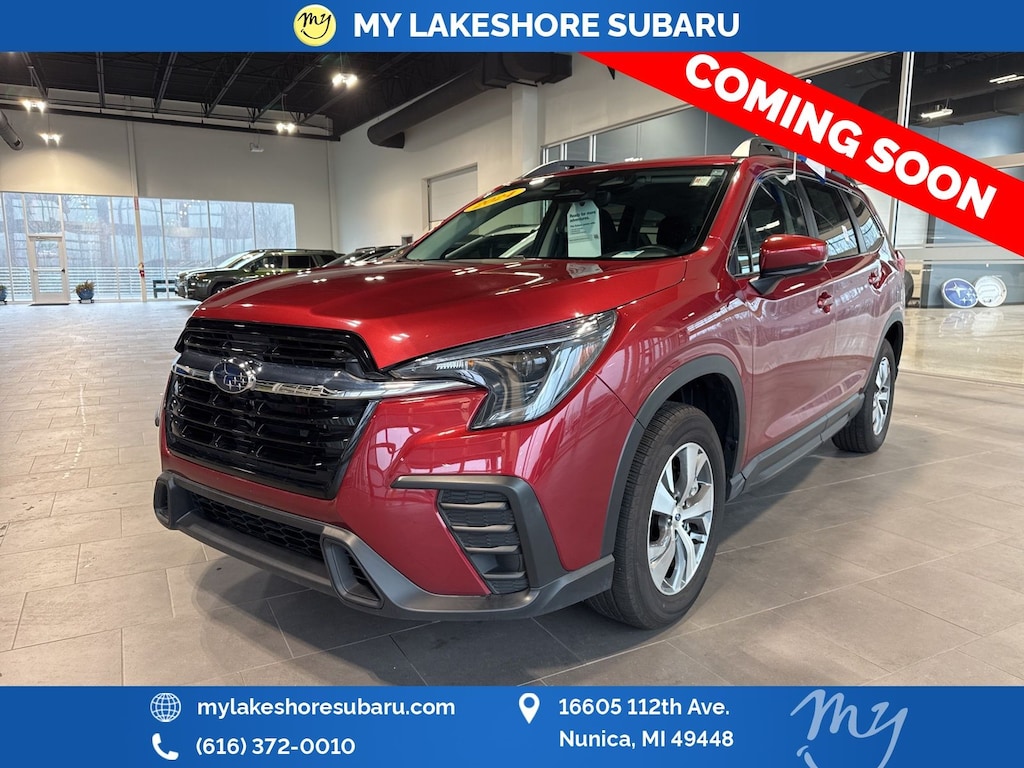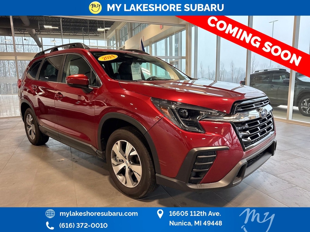 Ascent Premium, Crimson Red Pearl, *ALL WHEEL DRIVE*, *APPLE CARPLAY & ANDROID AUTO*, *BACKUP CAMERA*, *BLIND SPOT ALERT*, *EYESIGHT Driver Assist*, *HEATED SEATS*, *LANE DEPARTURE WARNING*, *OIL CHANGES for LIFE*. Certified. Crimson Red Pearl 2024 Subaru Ascent Premium AWD Lineartronic CVT 2.4L 4-Cylinder DOHC 16V
