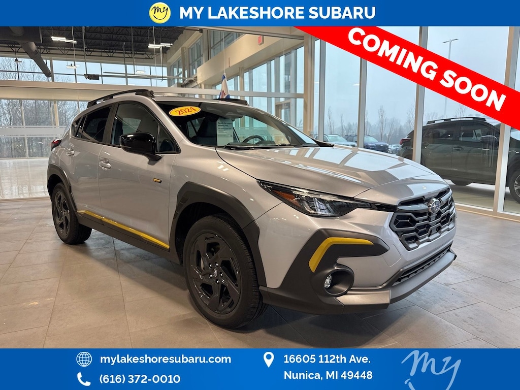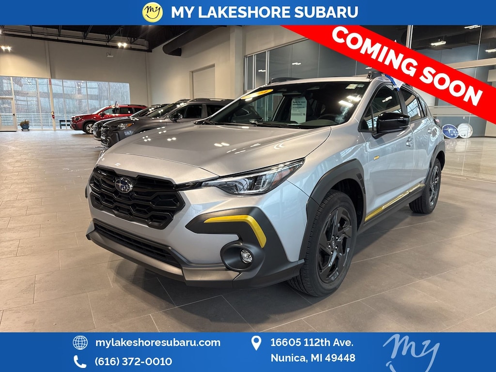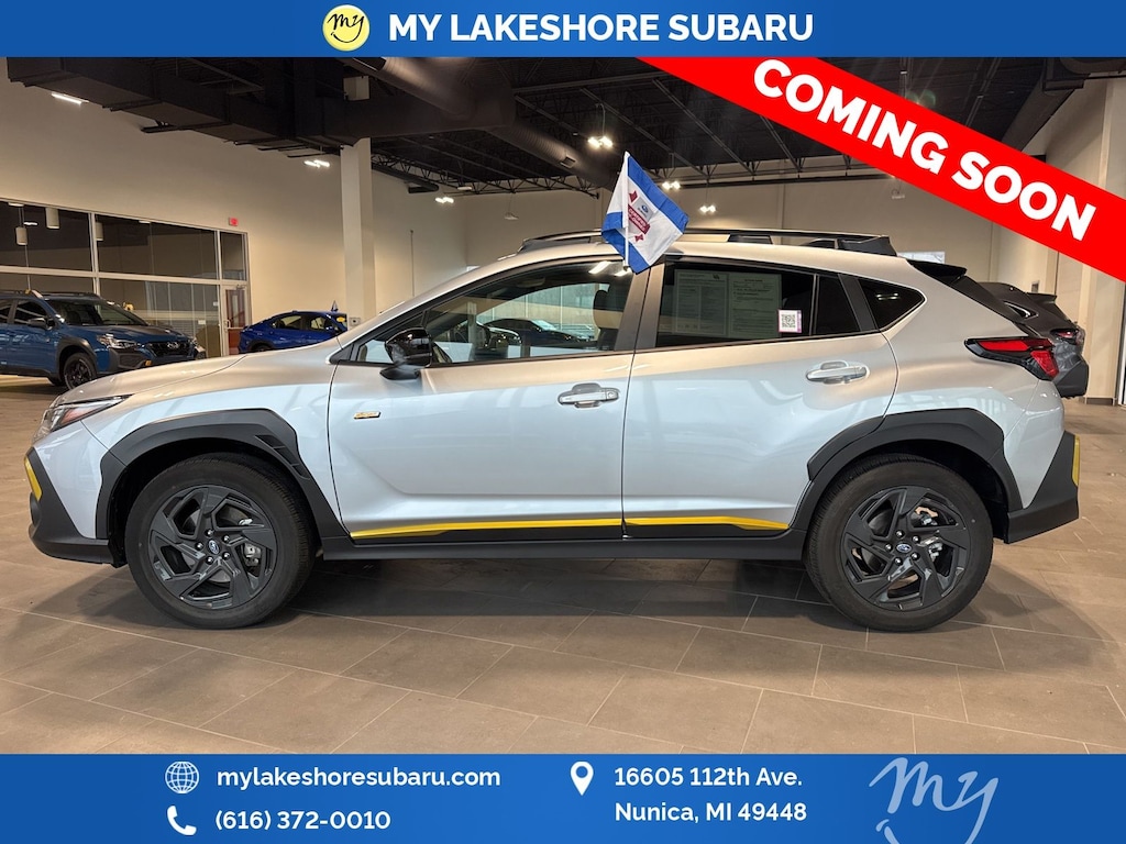 Crosstrek Sport, Ice Silver Metallic, *ALL WHEEL DRIVE*, *APPLE CARPLAY & ANDROID AUTO*, *BACKUP CAMERA*, *EYESIGHT Driver Assist*, *HEATED SEATS*, *LANE DEPARTURE WARNING*, *LOCAL TRADE*, *MOONROOF*, *OIL CHANGES for LIFE*, 10-Way Power Driver's Seat, Blind Spot Detection w/Rear Cross-Traffic Alert, BSD/RCTA & Power Driver Seat & Power Moonroof, Power Moonroof. Certified. Ice Silver Metallic 2024 Subaru Crosstrek Sport AWD Lineartronic CVT 2.5L 4-Cylinder DOHC 16V
