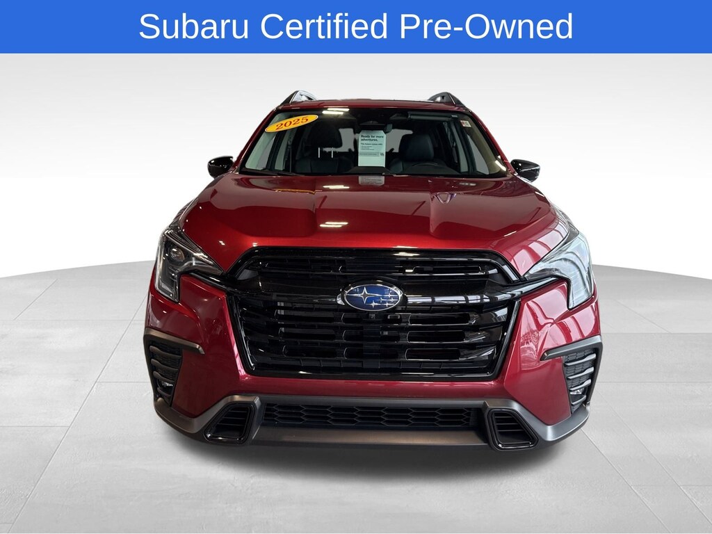Ascent Onyx Edition Touring, Crimson Red Pearl, *ALL WHEEL DRIVE*, *APPLE CARPLAY & ANDROID AUTO*, *EYESIGHT Driver Assist*, *HEATED STEERING WHEEL*, *LANE DEPARTURE WARNING*, *LEATHER HEATED POWER SEATS*, *OIL CHANGES for LIFE*, *PANORAMIC MOONROOF*. Certified. Crimson Red Pearl 2025 Subaru Ascent Onyx Edition Touring AWD Lineartronic CVT 2.4L 4-Cylinder DOHC 16V
