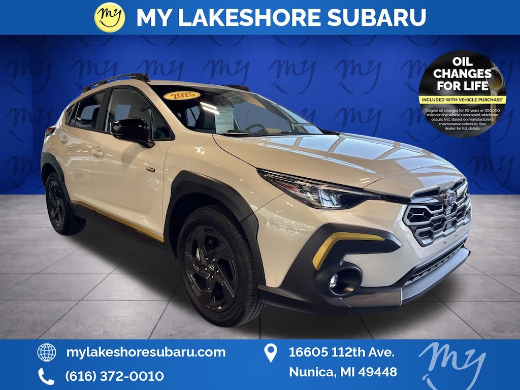 Crosstrek Sport, Crystal White Pearl, *ALL WHEEL DRIVE*, *APPLE CARPLAY & ANDROID AUTO*, *BACKUP CAMERA*, *EYESIGHT Driver Assist*, *HEATED SEATS*, *LANE DEPARTURE WARNING*, *MOONROOF*, *OIL CHANGES for LIFE*, 10-Way Power Driver's Seat, Blind Spot Detection (BSD), BSD/RCTA & Power Driver Seat & Power Moonroof, Power Moonroof, Rear Cross-Traffic Alert (RCTA) System. Certified. Crystal White Pearl 2025 Subaru Crosstrek Sport AWD Lineartronic CVT 2.5L 4-Cylinder DOHC 16V