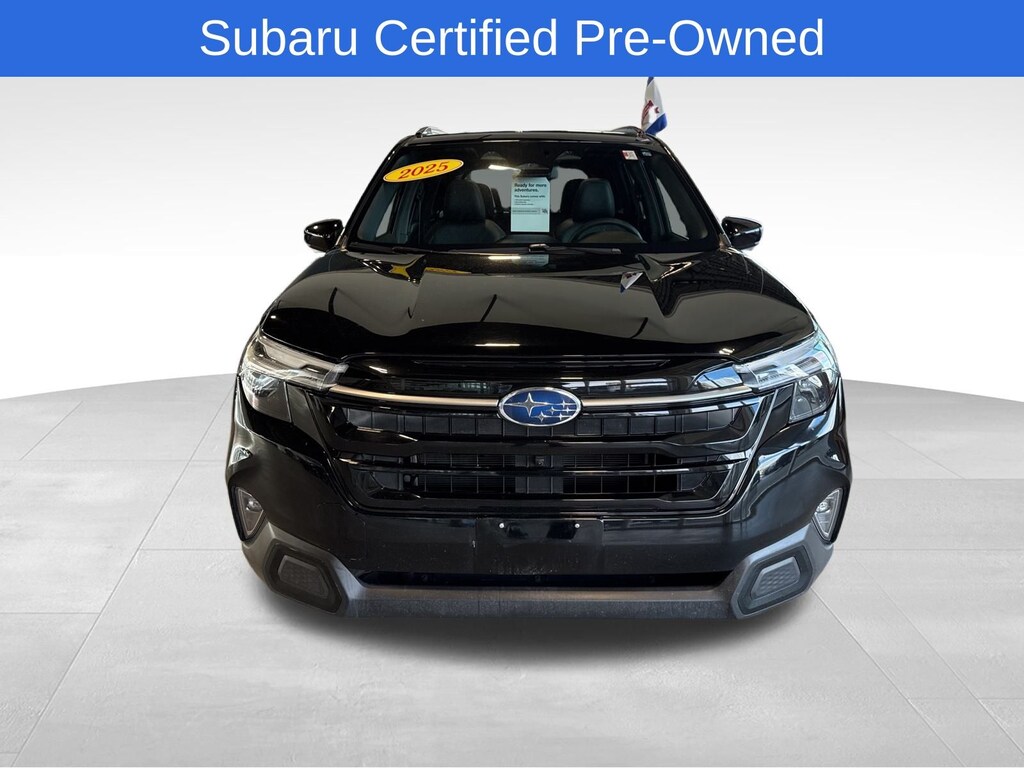 Forester Touring, Crystal Black Silica, *ALL WHEEL DRIVE*, *APPLE CARPLAY & ANDROID AUTO*, *BLIND SPOT MONITORING*, *EYESIGHT Driver Assist*, *HEATED REAR Seats*, *HEATED STEERING WHEEL*, *LANE DEPARTURE WARNING*, *LEATHER HEATED POWER SEATS*, *OIL CHANGES for LIFE*, *PANORAMIC MOONROOF*, *REARVIEW CAMERA*. Certified. Crystal Black Silica 2025 Subaru Forester Touring AWD Lineartronic CVT 2.5L 4-Cylinder DOHC 16V