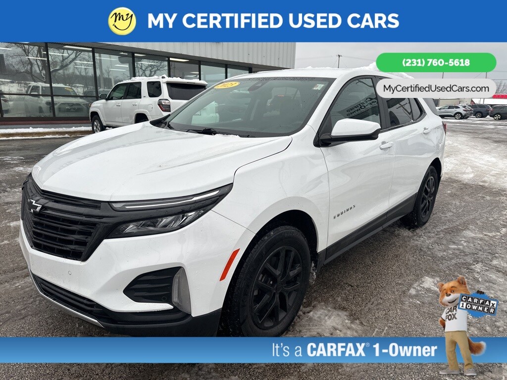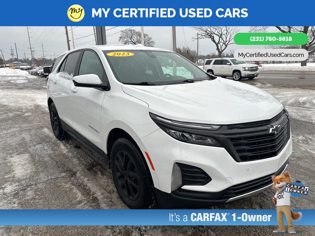 *VERY CLEAN* ***2023 CHEVROLET EQUINOX***, **AUTO HIGH BEAMS**, **AUTOMATIC EMERGENCY BRAKING**, **FORWARD COLLISION ALERT**, **FRONT AND REAR PARK ASSIST**, *HANDSFREE BLUETOOTH*, *LANE DEPARTURE WARNING*, *REARVIEW CAMERA*, *SUPER BUY*, *VERY CLEAN*, All-Weather Floor Liners (LPO), Auto High-beam Headlights, Floor Liner Package (LPO), Integrated Cargo Liner (LPO), Lane Change Alert w/Side Blind Zone Alert, Preferred Equipment Group 2FL, Rear Cross Traffic Alert, Side Blind Zone & Rear Cross Traffic, Wireless Apple CarPlay/Wireless Android Auto. MY Certified Used Cars of Muskegon is your #1 choice in Michigan to get the BEST PRICE on used vehicles and BEST value for your trade. The MY Certified Used Cars team is ready to provide you with a world-class experience, ensuring that you find the perfect vehicle that fits all your needs. Every vehicle has been through a full safety inspection completed by certified technicians and fully detailed. We sell many makes and models, Pre-Owned Vehicles with years from 2025-2024-2023-2022-2021-2020-2019-2018-2017-2016-2015-2014-2013-2012-2011-2010-2009-2008-2007 and all makes Audi, BMW, Chevrolet, Toyota, Volkswagen, Kia, Hyundai, Mercedes, Dodge, Chrysler, Jeep, Ram, Lincoln, Honda, Subaru, and many models like Bronco, Bronco Sport, Edge, Escapes, Expedition, Explorer, Fusions, Focus, Flex, F-150 Series, F-250, F-350, Super Duty Diesel Trucks, Maverick, Mustang MACH-E, Mustang, Ranger, Transit, Wrangler, Grand Cherokee, Grand Cherokee L, Wagoneer, Gladiator, Grand Caravan, RAM, RAM HEMI, and more. Take advantage of our VIP experience by calling 231-760-5618 to schedule a test drive. Read our customer reviews at www.mycertifiedusedcars.com/testimonials or view our entire selection of preowned vehicles at www.mycertifiedusedcars.com, or stop by today, located at 3692 Airline Rd. Muskegon, MI 49444. CARFAX One-Owner. Summit White 2023 Chevrolet Equinox LT AWD 6-Speed Automatic Electronic with Overdrive 1.5L DOHC Clean CARFAX.