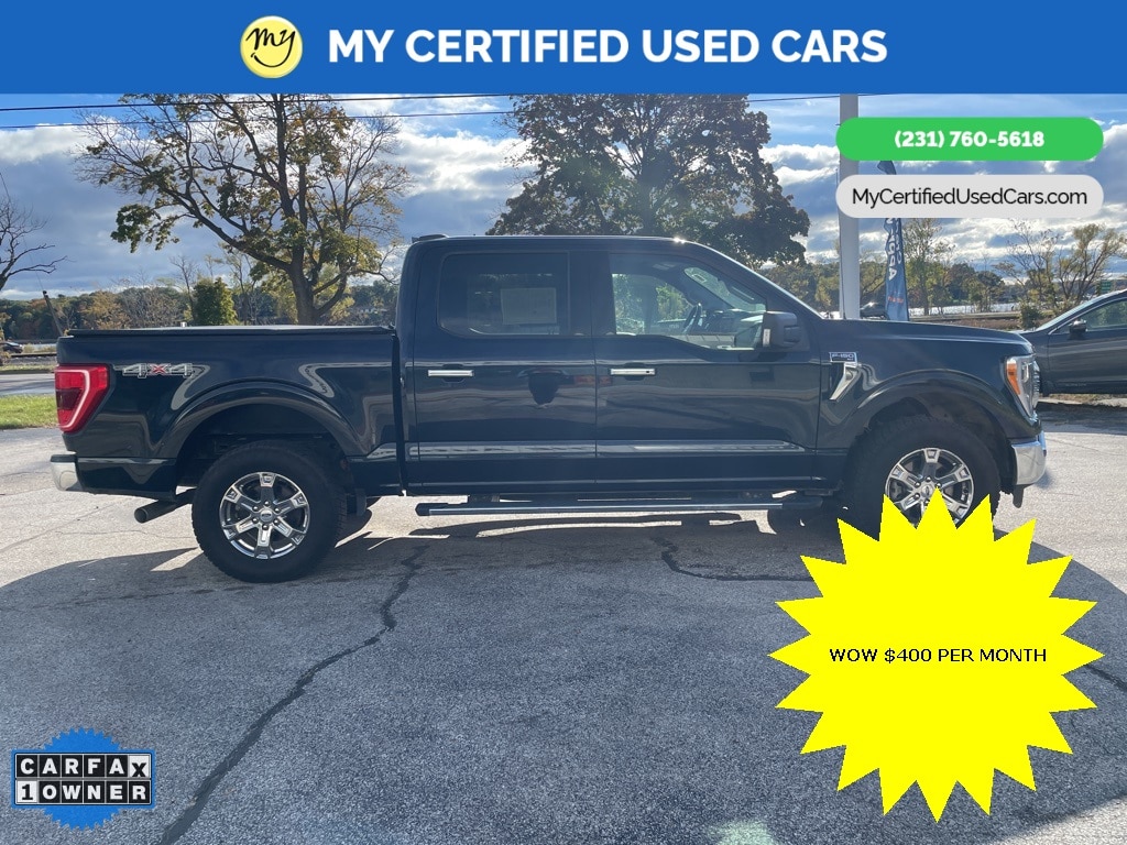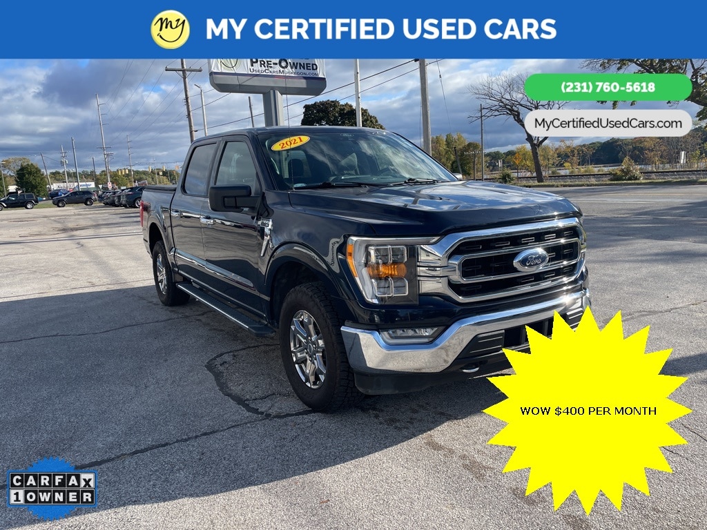 **2021 FORD F-150 XLT, 4D SuperCrew, 2.7L V6 EcoBoost, 4WD, *APPLE CARPLAY & ANDROID AUTO*, *HEATED SEATS*, *NAVIGATION* *Class IV Trailer Hitch Receiver*, Dual Zone Automatic Temperature Control, *Equipment Group 302A High*, Exterior Parking Camera Rear, Heated Front Seats, Integrated Trailer Brake Controller, Intelligent Access w/Push Button Start, Leather-Wrapped Steering Wheel, LED Box Lighting w/Zone Lighting, LED Reflector Headlamps, LED Sideview Mirror Spotlights, Navigation System, Onboard 400W Outlet, Power Glass Heated Sideview Mirrors, * 10-Way Power Driver & Passenger Seats, 2-Bar Style Grille w/Chrome 2 Minor Bars, 8" Productivity Screen in Instrument Cluster, Auto-Dimming Rear-View Mirror, Chrome Door & Tailgate Handles w/Body-Color Bezel, Chrome Single-Tip Exhaust, Chrome Step Bars, Pro Trailer Backup Assist, Radio: AM/FM SiriusXM w/360L, Rear Under-Seat Storage, Remote Start System w/Remote Tailgate Release, SecuriCode Drivers Side Keyless-Entry Keypad, SYNC 4 w/Enhanced Voice Recognition, Trailer Tow Package, Wheels: 18" Chrome-Like PVD, XLT Chrome Appearance Package. MY Certified Used Cars of Muskegon is your #1 choice in Michigan to get the BEST PRICE on used vehicles and BEST value for your trade. The MY Certified Used Cars team is ready to provide you with a world-class experience, ensuring that you find the perfect vehicle that fits all your needs. Every vehicle has been through a full safety inspection completed by certified technicians and fully detailed. We sell many makes and models, Pre-Owned Vehicles with years from 2025-2024-2023-2022-2021-2020-2019-2018-2017-2016-2015-2014-2013-2012-2011-2010-2009-2008-2007 and all makes Audi, BMW, Chevrolet, Toyota, Volkswagen, Kia, Hyundai, Mercedes, Dodge, Chrysler, Jeep, Ram, Lincoln, Honda, Subaru, and many models like Bronco, Bronco Sport, Edge, Escapes, Expedition, Explorer, Fusions, Focus, Flex, F-150 Series, F-250, F-350, Super Duty Diesel Trucks, Maverick, Mustang MACH-E, Mustang, Ranger, Transit, Wrangler, Grand Cherokee, Grand Cherokee L, Wagoneer, Gladiator, Grand Caravan, RAM, RAM HEMI, and more. Take advantage of our VIP experience by calling 231-760-5618 to schedule a test drive. Read our customer reviews at www.mycertifiedusedcars.com/testimonials or view our entire selection of preowned vehicles at www.mycertifiedusedcars.com, or stop by today, located at 3692 Airline Rd. Muskegon, MI 49444. CARFAX One-Owner. Antimatter Blue Metallic 2021 Ford F-150 XLT 4WD 10-Speed Automatic 2.7L V6 EcoBoost Clean CARFAX.
