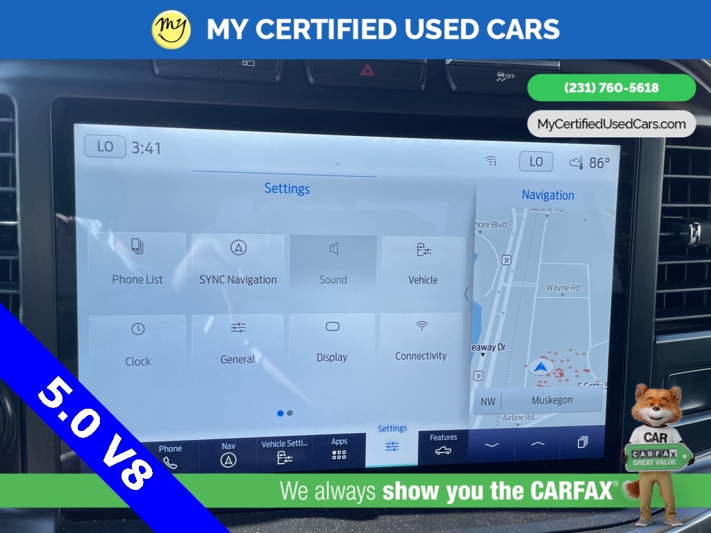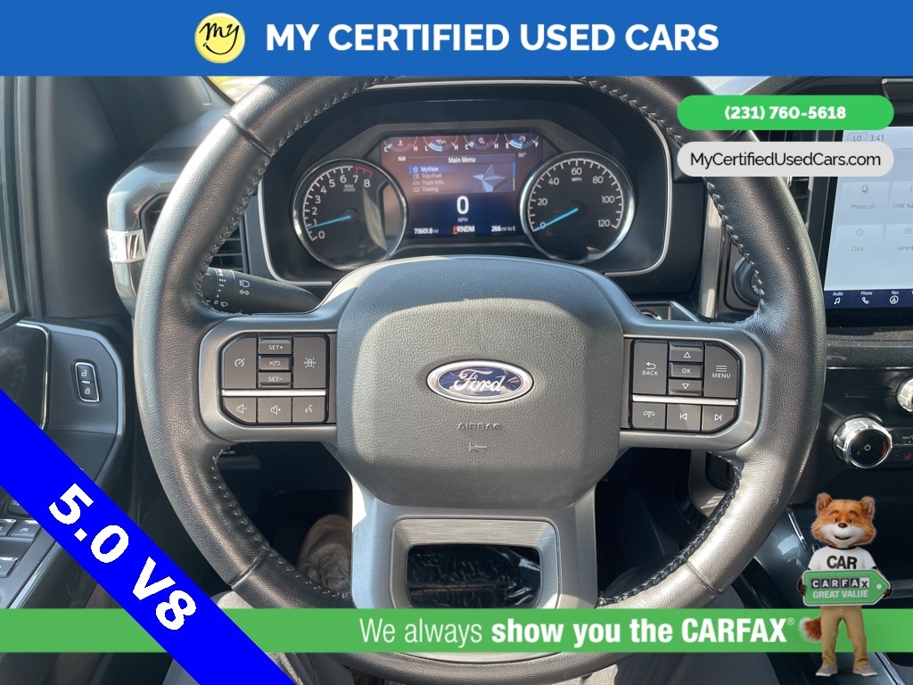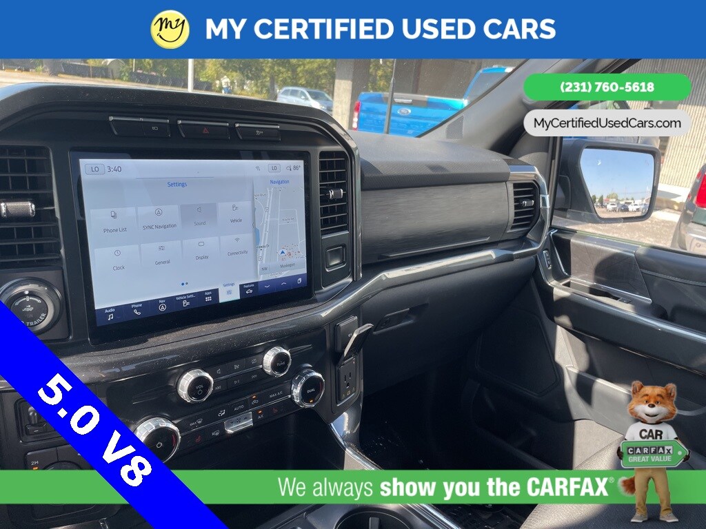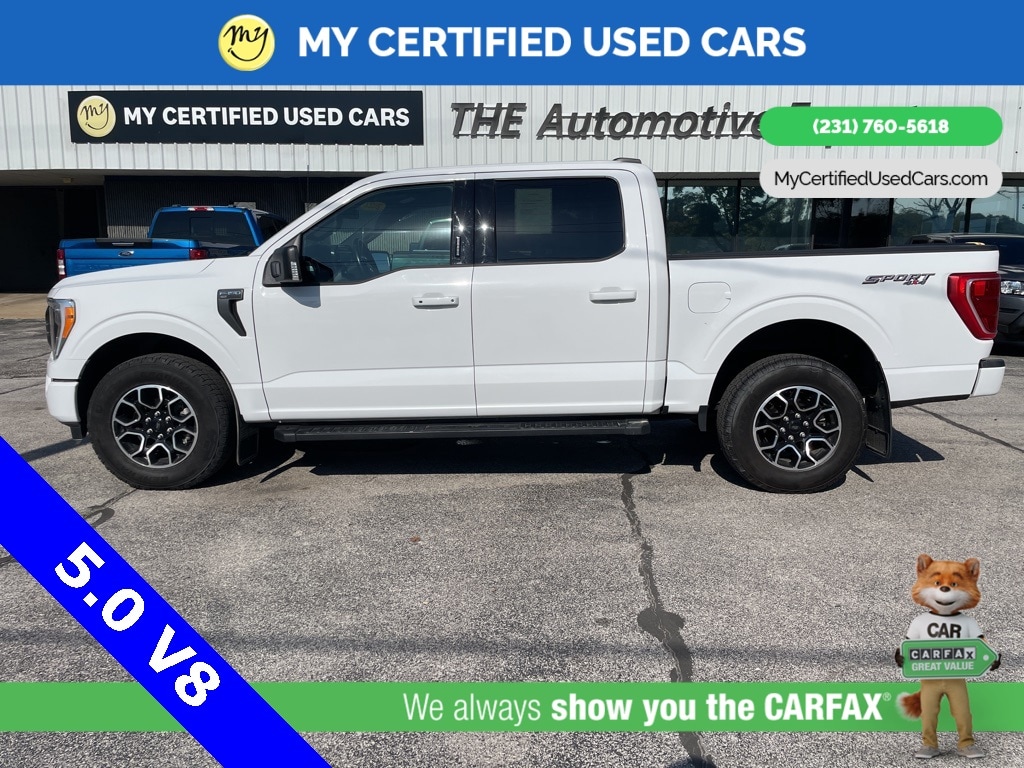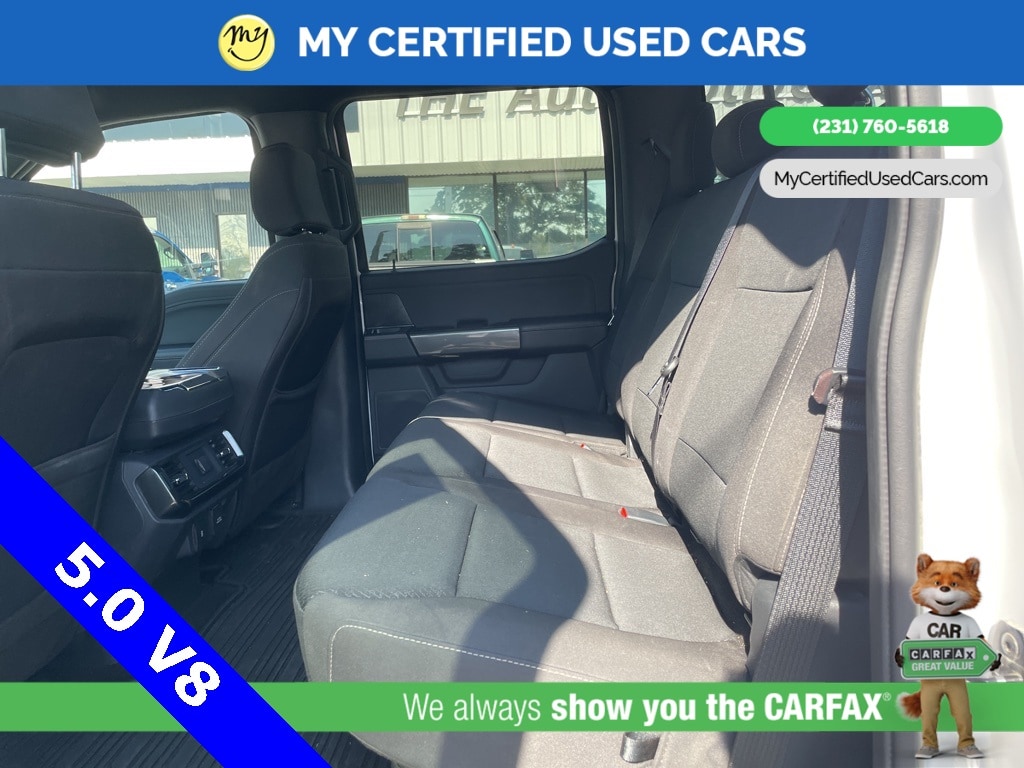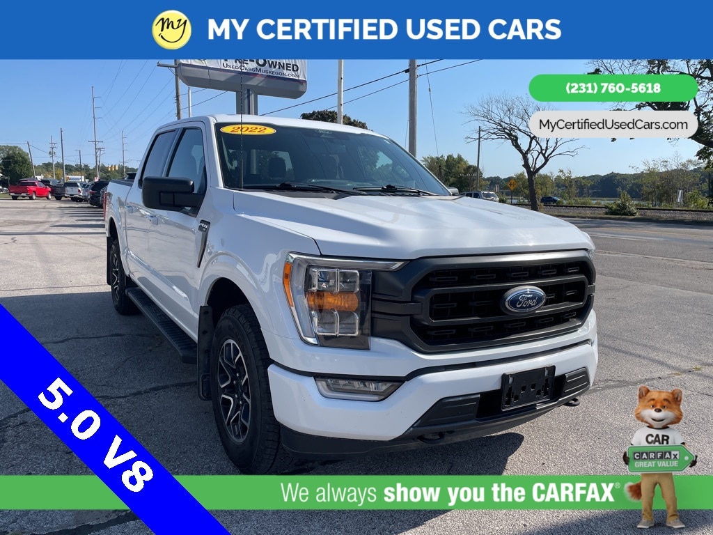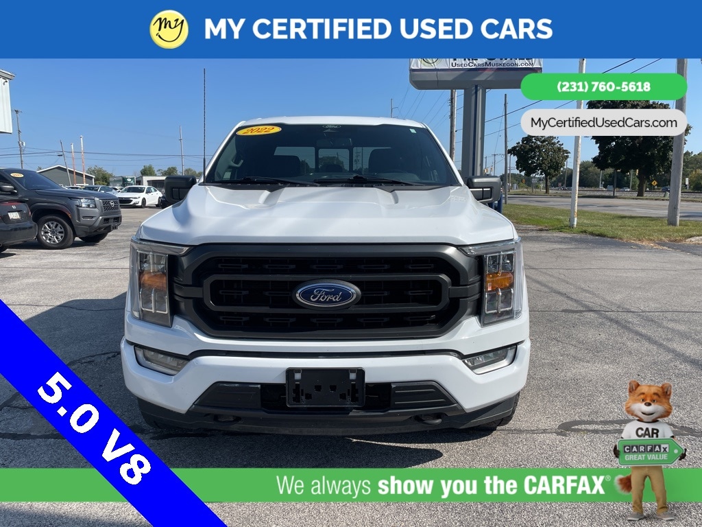*VERY CLEAN* **2022 FORD F-150 XLT 5.0L 4WD ** *SUPER BUY*, ***FULLY SERVICED*, **4WD,* **REMOTE START*** ***HEATED SEATS*, *LANE DEPARTURE WARNING*, *NAVIGATION SYSTEM*, *REARVIEW CAMERA*, *APPLE CARPLAY & ANDROID AUTO*, *BLIND SPOT MONITORING SYSTEM*, 3.73 ELECTRONIC LOCK RR AXLE** **7050# GVWR PACKAGE** TRAIL TOW PACKAGE** 36 GL FUEL TANK** 10-Way Power Driver & Passenger Seats, 2-Bar Style Grille w/Chrome 2 Minor Bars, 8" Productivity Screen in Instrument Cluster, ABS brakes, Alloy wheels, Auto-Dimming Rear-View Mirror, Bright Polished Step Bars, Chrome Door & Tailgate Handles w/Body-Color Bezel, Chrome Single-Tip Exhaust, Class IV Trailer Hitch Receiver, Compass, Dual Zone Electronic Automatic Temperature Control, Electronic Stability Control, Equipment Group 302A High, Heated door mirrors, Heated Front Seats, Illuminated entry, Intelligent Access w/Push Button Start, Leather-Wrapped Steering Wheel, LED Reflector Headlamps, LED Sideview Mirror Spotlights, Low tire pressure warning, Navigation System, Onboard 400W Outlet, Power Glass Heated Sideview Mirrors, Radio: AM/FM SiriusXM w/360L, Rear Under-Seat Storage, Remote keyless entry, Remote Start System w/Remote Tailgate Release, SecuriCode Drivers Side Keyless-Entry Keypad, SYNC 4 w/Enhanced Voice Recognition, Traction control, Wheels: 18" Chrome-Like PVD, XLT Chrome Appearance Package, Zone Lighting. MY Certified Used Cars of Muskegon is your #1 choice in Michigan to get the BEST PRICE on used vehicles and BEST value for your trade. The MY Certified Used Cars team is ready to provide you with a world-class experience, ensuring that you find the perfect vehicle that fits all your needs. Every vehicle has been through a full safety inspection completed by certified technicians and fully detailed. We sell many makes and models, Pre-Owned Vehicles with years from 2025-2024-2023-2022-2021-2020-2019-2018-2017-2016-2015-2014-2013-2012-2011-2010-2009-2008-2007 and all makes Audi, BMW, Chevrolet, Toyota, Volkswagen, Kia, Hyundai, Mercedes, Dodge, Chrysler, Jeep, Ram, Lincoln, Honda, Subaru, and many models like Bronco, Bronco Sport, Edge, Escapes, Expedition, Explorer, Fusions, Focus, Flex, F-150 Series, F-250, F-350, Super Duty Diesel Trucks, Maverick, Mustang MACH-E, Mustang, Ranger, Transit, Wrangler, Grand Cherokee, Grand Cherokee L, Wagoneer, Gladiator, Grand Caravan, RAM, RAM HEMI, and more. Take advantage of our VIP experience by calling 231-760-5618 to schedule a test drive. Read our customer reviews at www.mycertifiedusedcars.com/testimonials or view our entire selection of preowned vehicles at www.mycertifiedusedcars.com, or stop by today, located at 3692 Airline Rd. Muskegon, MI 49444. White 2022 Ford F-150 XLT 4WD 10-Speed Automatic 5.0L V8