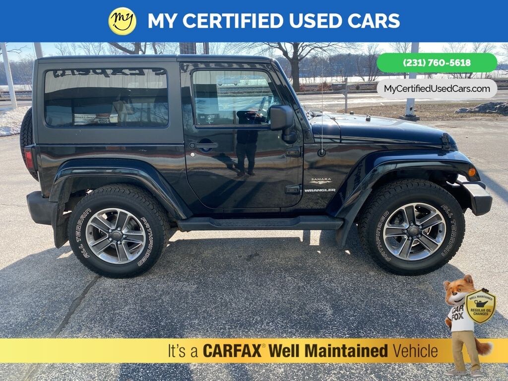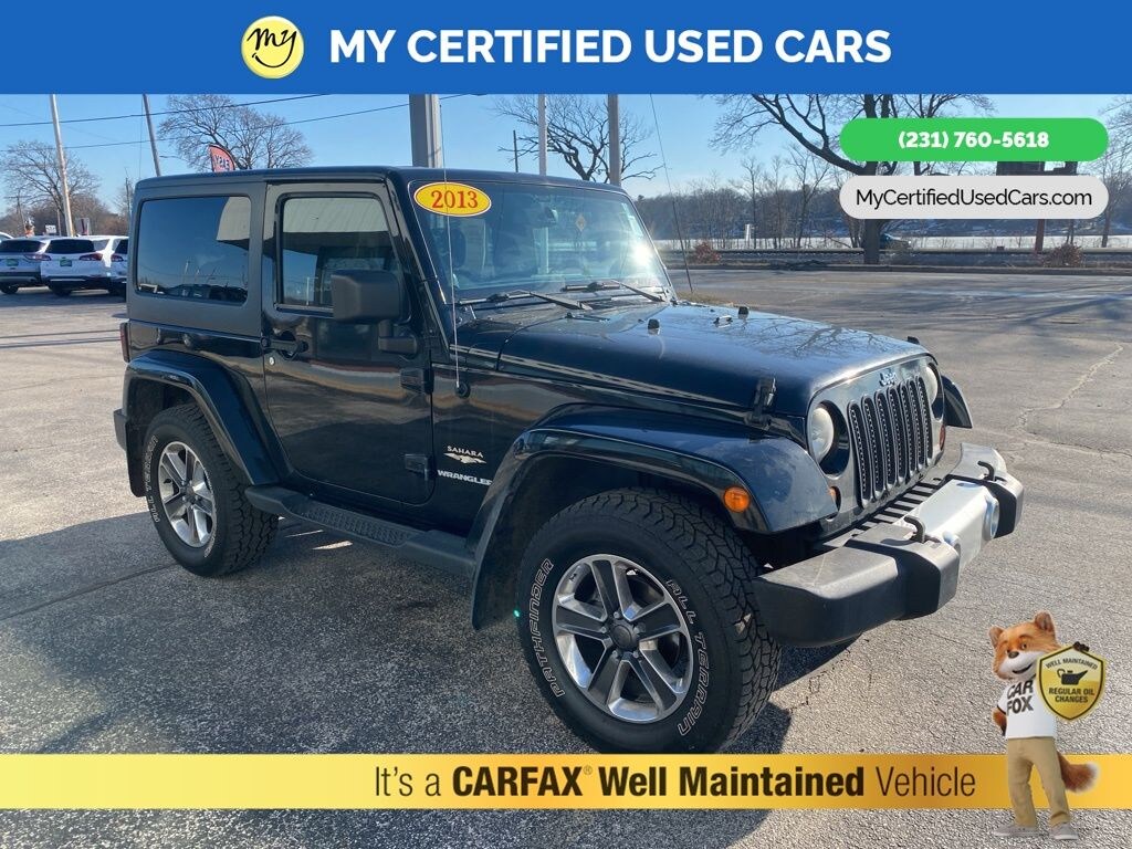 ***2013 JEEP WRANGLER SAHARA***, ***MANUAL TRANSMISSION***, **HARD TOP**, Alloy wheels, Heavy Duty Suspension w/Gas Shocks, Quick Order Package 23G, Trailer Tow Group, Trailer Tow w/4-Pin Connector Wiring. MY Certified Used Cars of Muskegon is your #1 choice in Michigan to get the BEST PRICE on used vehicles and BEST value for your trade. The MY Certified Used Cars team is ready to provide you with a world-class experience, ensuring that you find the perfect vehicle that fits all your needs. Every vehicle has been through a full safety inspection completed by certified technicians and fully detailed. We sell many makes and models, Pre-Owned Vehicles with years from 2025-2024-2023-2022-2021-2020-2019-2018-2017-2016-2015-2014-2013-2012-2011-2010-2009-2008-2007 and all makes Audi, BMW, Chevrolet, Toyota, Volkswagen, Kia, Hyundai, Mercedes, Dodge, Chrysler, Jeep, Ram, Lincoln, Honda, Subaru, and many models like Bronco, Bronco Sport, Edge, Escapes, Expedition, Explorer, Fusions, Focus, Flex, F-150 Series, F-250, F-350, Super Duty Diesel Trucks, Maverick, Mustang MACH-E, Mustang, Ranger, Transit, Wrangler, Grand Cherokee, Grand Cherokee L, Wagoneer, Gladiator, Grand Caravan, RAM, RAM HEMI, and more. Take advantage of our VIP experience by calling 231-760-5618 to schedule a test drive. Read our customer reviews at www.mycertifiedusedcars.com/testimonials or view our entire selection of preowned vehicles at www.mycertifiedusedcars.com, or stop by today, located at 3692 Airline Rd. Muskegon, MI 49444. Black Clearcoat 2013 Jeep Wrangler Sahara 4WD 6-Speed Manual 3.6L V6 24V VVT