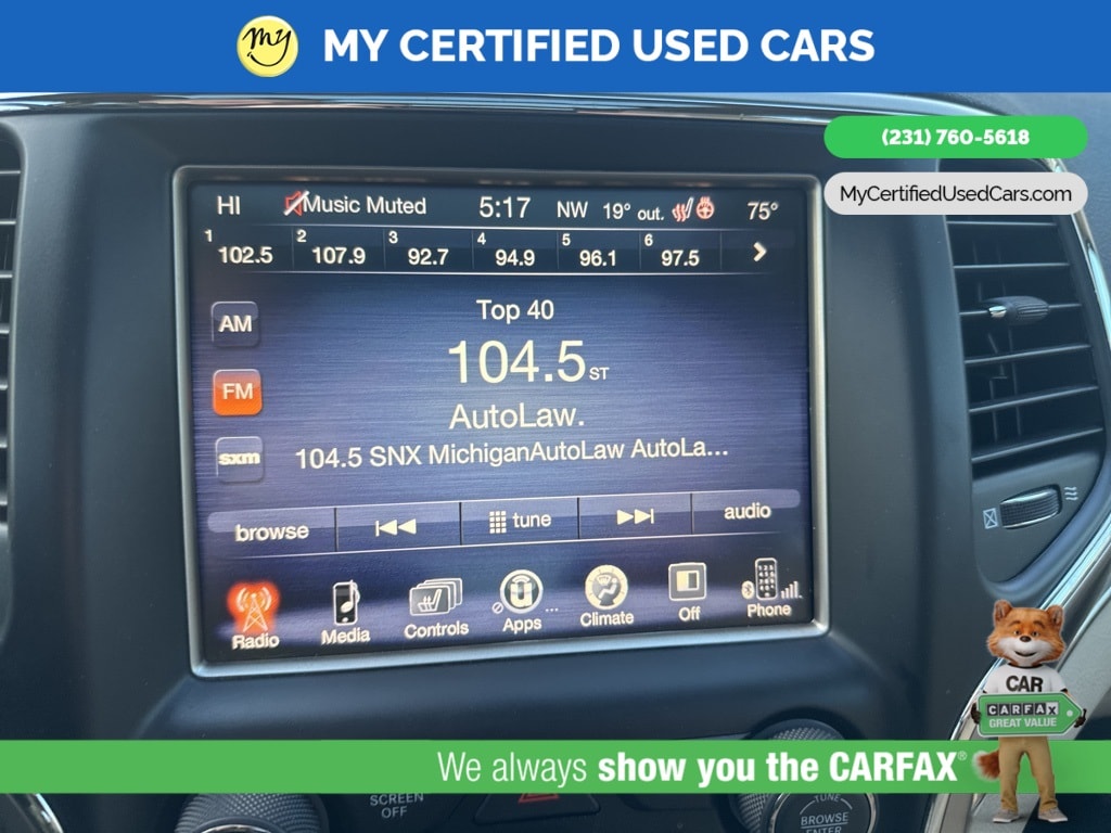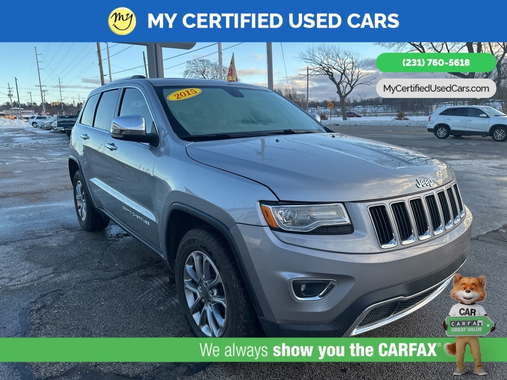 *VERY CLEAN** **ONE OWNER** **2015 JEEP GRAND CHEROKEE LIMITED RWD***, *LOCAL TRADE* *SUPER BUY* *FULLY SERVICED*, *REMOTE START* , *LEATHER HEATED/COOLED POWER SEATS** *HEATED STEERING WHEEL* *MEMORY SEAT* , *MEMORY SEAT*, *NAVIGATION SYSTEM*, *PANORAMIC MOONROOF*, *PREMIUM SOUND*, *BACKUP SENSORS* *REARVIEW CAMERA* *HANDSFREE BLUETOOTH *APPLE CARPLAY & ANDROID AUTO* , 506 Watt Amplifier, 6 Month Trial (Registration Required), 8.4" Touchscreen Display, 9 Amplified Speakers w/Subwoofer, Auto High Beam Headlamp Control, Automatic Headlamp Leveling System, Bi-Xenon High-Intensity Discharge Headlamps, Dual-Pane Panoramic Sunroof, Exterior Parking Camera Rear, For Details Visit DriveUconnect.com, Garage door transmitter, GPS Antenna Input, Heated front seats, Heated rear seats, Integrated Voice Command w/Bluetooth, Leather Trimmed Seats w/Perforated Inserts, LED Daytime Running Headlamps, Luxury Group II, Memory seat, Nav-Capable! See Dealer for Details, Navigation System, Power Liftgate, Power Tilt/Telescope Steering Column, Quick Order Package 23H (DISC), Radio: Uconnect 8.4, Rain Sensitive Windshield Wipers, Rear Parking Sensors, Rear-View Auto-Dimming Mirror w/Microphone, Roadside Assistance & 9-1-1 Call, SIRIUSXM Satellite Radio, Uconnect Access, Ventilated Front Seats. MY Certified Used Cars of Muskegon is your #1 choice in Michigan to get the BEST PRICE on used vehicles and BEST value for your trade. The MY Certified Used Cars team is ready to provide you with a world-class experience, ensuring that you find the perfect vehicle that fits all your needs. Every vehicle has been through a full safety inspection completed by certified technicians and fully detailed. We sell many makes and models, Pre-Owned Vehicles with years from 2025-2024-2023-2022-2021-2020-2019-2018-2017-2016-2015-2014-2013-2012-2011-2010-2009-2008-2007 and all makes Audi, BMW, Chevrolet, Toyota, Volkswagen, Kia, Hyundai, Mercedes, Dodge, Chrysler, Jeep, Ram, Lincoln, Honda, Subaru, and many models like Bronco, Bronco Sport, Edge, Escapes, Expedition, Explorer, Fusions, Focus, Flex, F-150 Series, F-250, F-350, Super Duty Diesel Trucks, Maverick, Mustang MACH-E, Mustang, Ranger, Transit, Wrangler, Grand Cherokee, Grand Cherokee L, Wagoneer, Gladiator, Grand Caravan, RAM, RAM HEMI, and more. Take advantage of our VIP experience by calling 231-760-5618 to schedule a test drive. Read our customer reviews at www.mycertifiedusedcars.com/testimonials or view our entire selection of preowned vehicles at www.mycertifiedusedcars.com, or stop by today, located at 3692 Airline Rd. Muskegon, MI 49444. Billet Silver Metallic Clearcoat 2015 Jeep Grand Cherokee Limited RWD 8-Speed Automatic 3.6L V6 24V VVT Clean CARFAX.