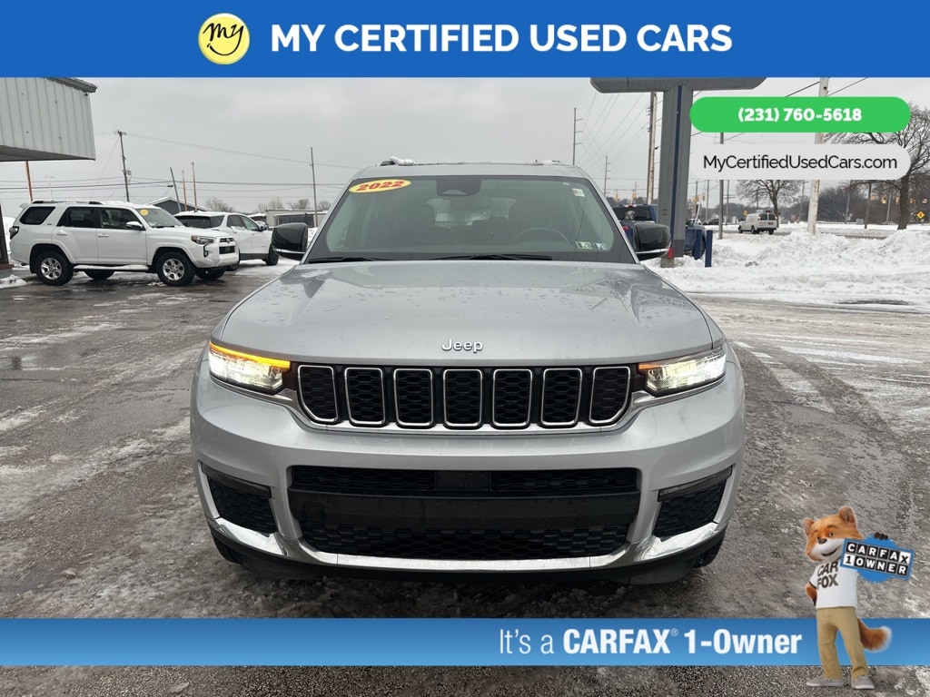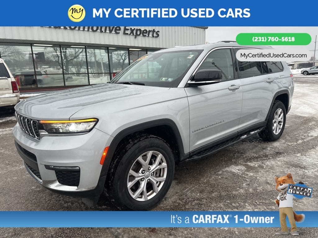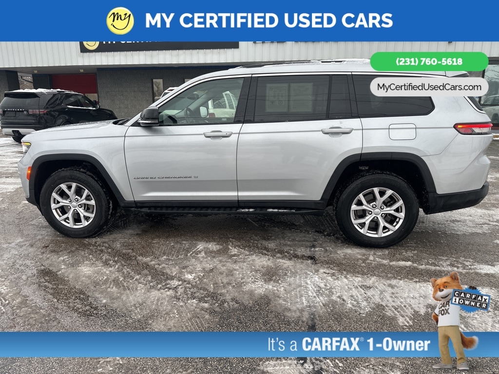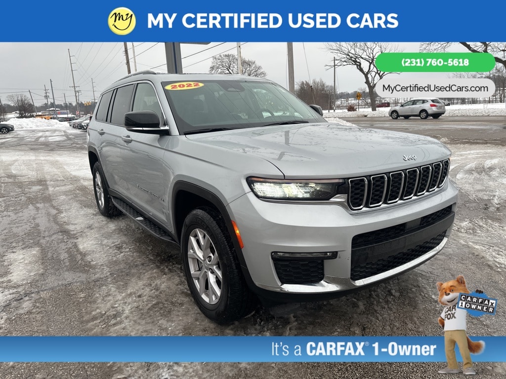 *VERY CLEAN* **ONE OWNER** ***2022 JEEP GRAND CHEROKEE L LIMITED 4WD***, *SUPER BUY* *REMOTE START* *LEATHER HEATED POWER SEATS* *HEATED STEERING WHEEL* **HEATED SECOND ROW**, *PANORAMIC MOONROOF*, *PREMIUM SOUND* *APPLE CARPLAY & ANDROID AUTO*, *REARVIEW CAMERA*, 10.1" Touchscreen Display, 4G LTE Wi-Fi Hot Spot, 506 Watt Amplifier, 9 Amplified Speakers w/Subwoofer, Active Noise Control System, All Radio Equipped Vehicles, Apple CarPlay, Auto High-beam Headlights, Connected Travel & Traffic Services, Connectivity - US/Canada, Disassociated Touchscreen Display, Dual-Pane Panoramic Sunroof, For Details, Visit DriveUconnect.com, For More Info, Call 800-643-2112, Global Telematics Box Module (TBM), Google Android Auto, GPS Antenna Input, GPS Navigation, HD Radio, Heated rear seats, Integrated Center Stack Radio, Integrated Voice Command w/Bluetooth, Interior Rear Facing Camera, Navigation System, ParkView Rear Back-Up Camera, Power Liftgate, Quick Order Package 22E, Radio: Uconnect 5 Nav w/10.1" Display, SiriusXM Radio Service, SiriusXM Satellite Radio, SiriusXM w/360L, USB Host Flip. MY Certified Used Cars of Muskegon is your #1 choice in Michigan to get the BEST PRICE on used vehicles and BEST value for your trade. The MY Certified Used Cars team is ready to provide you with a world-class experience, ensuring that you find the perfect vehicle that fits all your needs. Every vehicle has been through a full safety inspection completed by certified technicians and fully detailed. We sell many makes and models, Pre-Owned Vehicles with years from 2025-2024-2023-2022-2021-2020-2019-2018-2017-2016-2015-2014-2013-2012-2011-2010-2009-2008-2007 and all makes Audi, BMW, Chevrolet, Toyota, Volkswagen, Kia, Hyundai, Mercedes, Dodge, Chrysler, Jeep, Ram, Lincoln, Honda, Subaru, and many models like Bronco, Bronco Sport, Edge, Escapes, Expedition, Explorer, Fusions, Focus, Flex, F-150 Series, F-250, F-350, Super Duty Diesel Trucks, Maverick, Mustang MACH-E, Mustang, Ranger, Transit, Wrangler, Grand Cherokee, Grand Cherokee L, Wagoneer, Gladiator, Grand Caravan, RAM, RAM HEMI, and more. Take advantage of our VIP experience by calling 231-760-5618 to schedule a test drive. Read our customer reviews at www.mycertifiedusedcars.com/testimonials or view our entire selection of preowned vehicles at www.mycertifiedusedcars.com, or stop by today, located at 3692 Airline Rd. Muskegon, MI 49444. CARFAX One-Owner. Silver Zynith 2022 Jeep Grand Cherokee L Limited 4WD 8-Speed Automatic 3.6L V6 24V VVT Clean CARFAX.