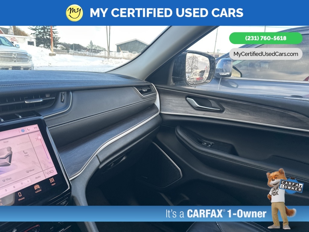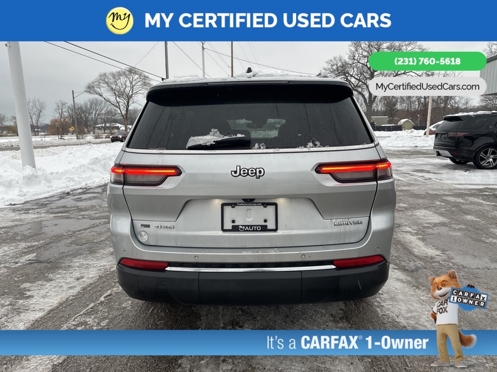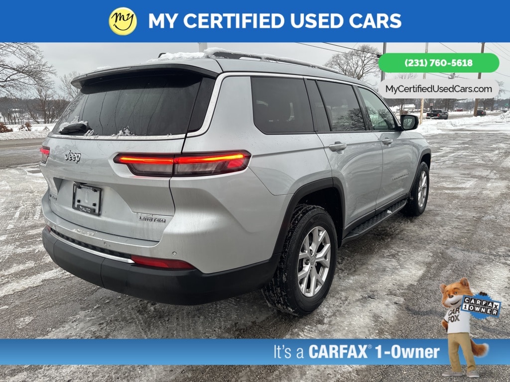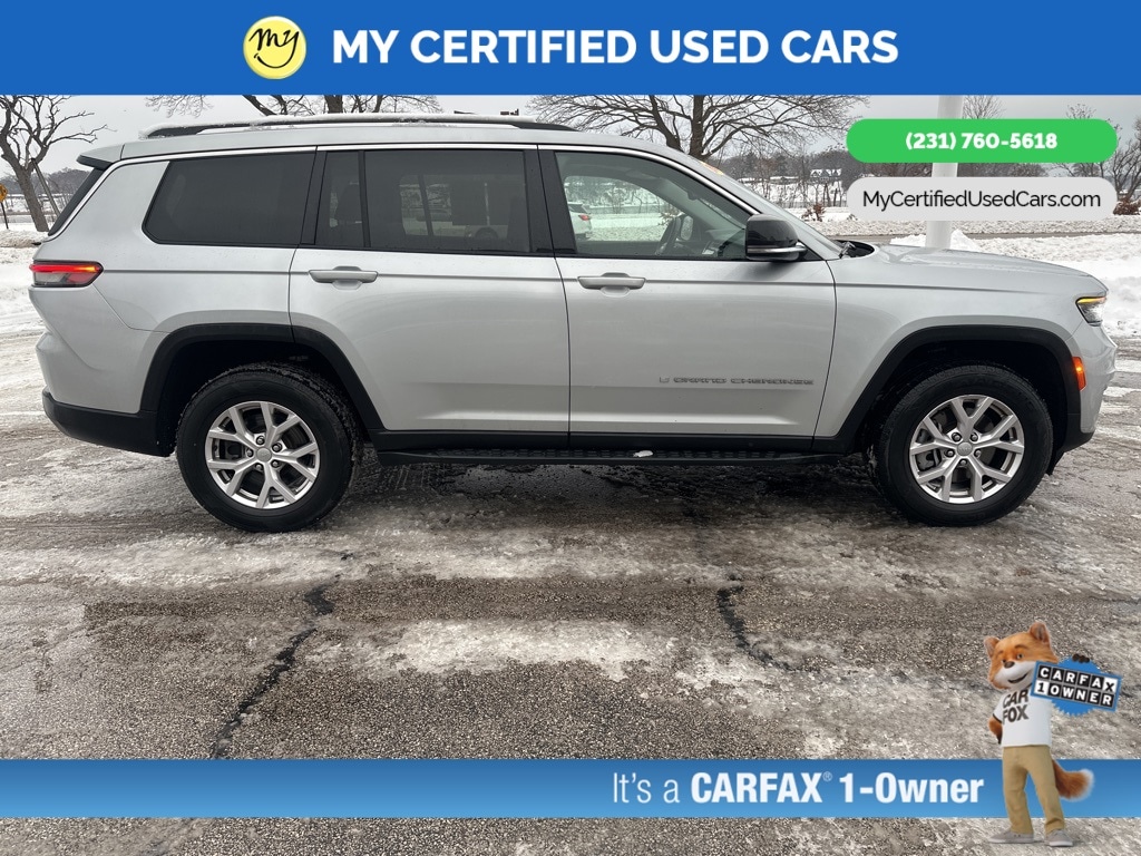 *VERY CLEAN* **ONE OWNER** ***2022 JEEP GRAND CHEROKEE L LIMITED 4WD***, *SUPER BUY* *REMOTE START* *LEATHER HEATED POWER SEATS* *HEATED STEERING WHEEL* **HEATED SECOND ROW**, *PANORAMIC MOONROOF*, *PREMIUM SOUND* *APPLE CARPLAY & ANDROID AUTO*, *REARVIEW CAMERA*, 10.1" Touchscreen Display, 4G LTE Wi-Fi Hot Spot, 506 Watt Amplifier, 9 Amplified Speakers w/Subwoofer, Active Noise Control System, All Radio Equipped Vehicles, Apple CarPlay, Auto High-beam Headlights, Connected Travel & Traffic Services, Connectivity - US/Canada, Disassociated Touchscreen Display, Dual-Pane Panoramic Sunroof, For Details, Visit DriveUconnect.com, For More Info, Call 800-643-2112, Global Telematics Box Module (TBM), Google Android Auto, GPS Antenna Input, GPS Navigation, HD Radio, Heated rear seats, Integrated Center Stack Radio, Integrated Voice Command w/Bluetooth, Interior Rear Facing Camera, Navigation System, ParkView Rear Back-Up Camera, Power Liftgate, Quick Order Package 22E, Radio: Uconnect 5 Nav w/10.1" Display, SiriusXM Radio Service, SiriusXM Satellite Radio, SiriusXM w/360L, USB Host Flip. MY Certified Used Cars of Muskegon is your #1 choice in Michigan to get the BEST PRICE on used vehicles and BEST value for your trade. The MY Certified Used Cars team is ready to provide you with a world-class experience, ensuring that you find the perfect vehicle that fits all your needs. Every vehicle has been through a full safety inspection completed by certified technicians and fully detailed. We sell many makes and models, Pre-Owned Vehicles with years from 2025-2024-2023-2022-2021-2020-2019-2018-2017-2016-2015-2014-2013-2012-2011-2010-2009-2008-2007 and all makes Audi, BMW, Chevrolet, Toyota, Volkswagen, Kia, Hyundai, Mercedes, Dodge, Chrysler, Jeep, Ram, Lincoln, Honda, Subaru, and many models like Bronco, Bronco Sport, Edge, Escapes, Expedition, Explorer, Fusions, Focus, Flex, F-150 Series, F-250, F-350, Super Duty Diesel Trucks, Maverick, Mustang MACH-E, Mustang, Ranger, Transit, Wrangler, Grand Cherokee, Grand Cherokee L, Wagoneer, Gladiator, Grand Caravan, RAM, RAM HEMI, and more. Take advantage of our VIP experience by calling 231-760-5618 to schedule a test drive. Read our customer reviews at www.mycertifiedusedcars.com/testimonials or view our entire selection of preowned vehicles at www.mycertifiedusedcars.com, or stop by today, located at 3692 Airline Rd. Muskegon, MI 49444. CARFAX One-Owner. Silver Zynith 2022 Jeep Grand Cherokee L Limited 4WD 8-Speed Automatic 3.6L V6 24V VVT Clean CARFAX.