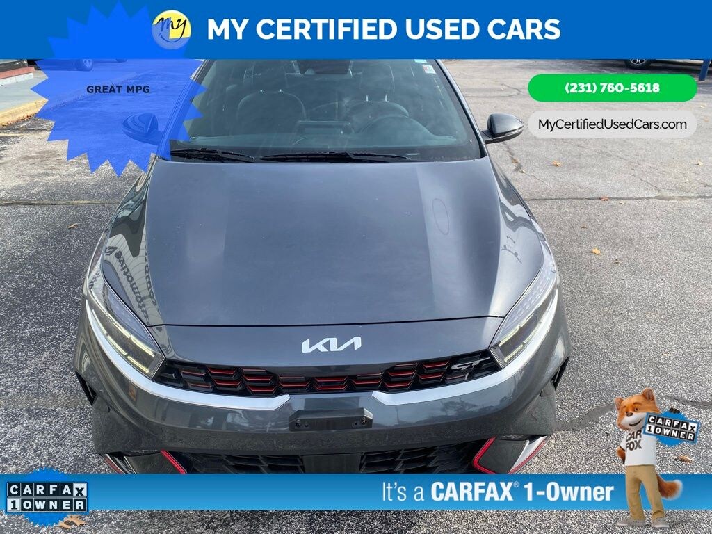 *SUPER BUY*, *VERY CLEAN* ***2023 KIA FORTE GT*** *FULLY SERVICED* **GT LINE** *NAVIGATION SYSTEM* *APPLE CARPLAY & ANDROID AUTO*, *BLIND SPOT MONITORING SYSTEM*, *HANDSFREE BLUETOOTH*, *REARVIEW CAMERA*, **PARKING SENSORS** Auto High-beam Headlights, Exterior Parking Camera Rear. MY Certified Used Cars of Muskegon is your #1 choice in Michigan to get the BEST PRICE on used vehicles and BEST value for your trade. The MY Certified Used Cars team is ready to provide you with a world-class experience, ensuring that you find the perfect vehicle that fits all your needs. Every vehicle has been through a full safety inspection completed by certified technicians and fully detailed. We sell many makes and models, Pre-Owned Vehicles with years from 2025-2024-2023-2022-2021-2020-2019-2018-2017-2016-2015-2014-2013-2012-2011-2010-2009-2008-2007 and all makes Audi, BMW, Chevrolet, Toyota, Volkswagen, Kia, Hyundai, Mercedes, Dodge, Chrysler, Jeep, Ram, Lincoln, Honda, Subaru, and many models like Bronco, Bronco Sport, Edge, Escapes, Expedition, Explorer, Fusions, Focus, Flex, F-150 Series, F-250, F-350, Super Duty Diesel Trucks, Maverick, Mustang MACH-E, Mustang, Ranger, Transit, Wrangler, Grand Cherokee, Grand Cherokee L, Wagoneer, Gladiator, Grand Caravan, RAM, RAM HEMI, and more. Take advantage of our VIP experience by calling 231-760-5618 to schedule a test drive. Read our customer reviews at www.mycertifiedusedcars.com/testimonials or view our entire selection of preowned vehicles at www.mycertifiedusedcars.com, or stop by today, located at 3692 Airline Rd. Muskegon, MI 49444. Gravity Gray 2023 Kia Forte GT FWD 7-Speed Automatic 1.6L I4 Turbo