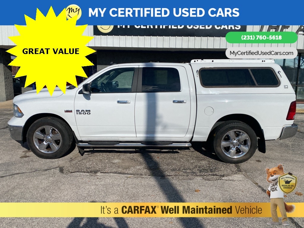 **SUPER BUY** ***2017 RAM 1500 BIG HORN 5.7 HEMI 2WD***, *VERY CLEAN* *ROOF RACK* **TOPPER** *APPLE CARPLAY & ANDROID AUTO*, *HANDSFREE BLUETOOTH*, *NAVIGATION SYSTEM*, *REARVIEW CAMERA*, *ROOF RACK*, Big Horn Regional Package 115V Auxiliary Power Outlet, 40/20/40 Split Bench Seat, 6 Month Trial (Reg. Required), 6 Month Trial (Registration Required), 8.4" Touchscreen Display, Air Conditioning ATC w/Dual Zone Control, Audio Jack Input for Mobile Devices, Auto-Dimming Exterior Mirrors, Auto-Dimming Rear-View Mirror, Big Horn Badge, Bright/Bright Billets Grille, Charge Only Remote USB Port, Class IV Receiver Hitch, Dual Rear Exhaust w/Bright Tips, Electroluminescent Instrument Cluster, Exterior Mirrors Courtesy Lamps, Exterior Mirrors w/Supplemental Signals, Fog Lamps, Folding Flat Load Floor Storage, For Details Visit DriveUconnect.com, Front Armrest w/3 Cupholders, Front Center Seat Cushion Storage, Glove Box Lamp, GPS Antenna Input, GPS Navigation, Integrated Voice Command w/Bluetooth, Leather Wrapped Steering Wheel, LED Bed Lighting, Media Hub (USB, AUX), Nav-Capable! See Dealer for Details, Overhead Console w/Garage Dr Opener, ParkSense Front/Rear Park Assist System, ParkView Rear Back-Up Camera, Power 10-Way Driver Seat, Power Heated Fold-Away Mirrors, Power Lumbar Adjust, Power-Folding Mirrors, Premium Cloth 40/20/40 Bench Seat, Quick Order Package 26S Big Horn, Radio: Uconnect 3C w/8.4" Display, Rear 60/40 Split Folding Seat, Rear Dome w/On/Off Switch Lamp, Remote Start System, Remote USB Port, Security Alarm, SIRIUSXM Satellite Radio, Steering Wheel Mounted Audio Controls, Storage Tray, Sun Visors w/Illuminated Vanity Mirrors, Uconnect Access, Underhood Lamp, Universal Garage Door Opener, Wheels: 20" x 8" Aluminum Chrome Clad. MY Certified Used Cars of Muskegon is your #1 choice in Michigan to get the BEST PRICE on used vehicles and BEST value for your trade. The MY Certified Used Cars team is ready to provide you with a world-class experience, ensuring that you find the perfect vehicle that fits all your needs. Every vehicle has been through a full safety inspection completed by certified technicians and fully detailed. We sell many makes and models, Pre-Owned Vehicles with years from 2025-2024-2023-2022-2021-2020-2019-2018-2017-2016-2015-2014-2013-2012-2011-2010-2009-2008-2007 and all makes Audi, BMW, Chevrolet, Toyota, Volkswagen, Kia, Hyundai, Mercedes, Dodge, Chrysler, Jeep, Ram, Lincoln, Honda, Subaru, and many models like Bronco, Bronco Sport, Edge, Escapes, Expedition, Explorer, Fusions, Focus, Flex, F-150 Series, F-250, F-350, Super Duty Diesel Trucks, Maverick, Mustang MACH-E, Mustang, Ranger, Transit, Wrangler, Grand Cherokee, Grand Cherokee L, Wagoneer, Gladiator, Grand Caravan, RAM, RAM HEMI, and more. Take advantage of our VIP experience by calling 231-760-5618 to schedule a test drive. Read our customer reviews at www.mycertifiedusedcars.com/testimonials or view our entire selection of preowned vehicles at www.mycertifiedusedcars.com, or stop by today, located at 3692 Airline Rd. Muskegon, MI 49444. CARFAX One-Owner. Bright White Clearcoat 2017 Ram 1500 Big Horn RWD 8-Speed Automatic HEMI 5.7L V8 Multi Displacement VVT Clean CARFAX.