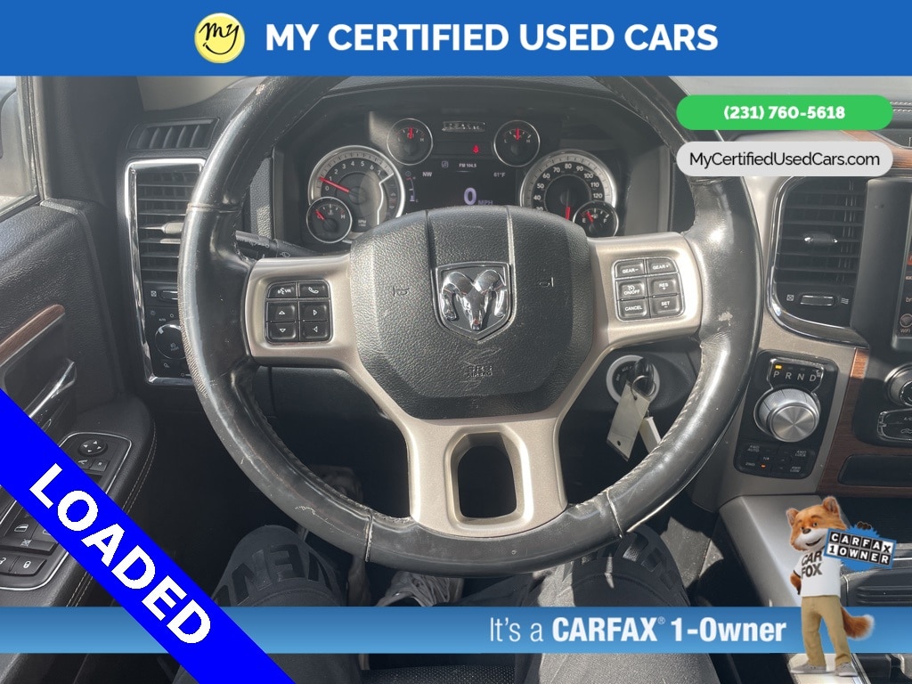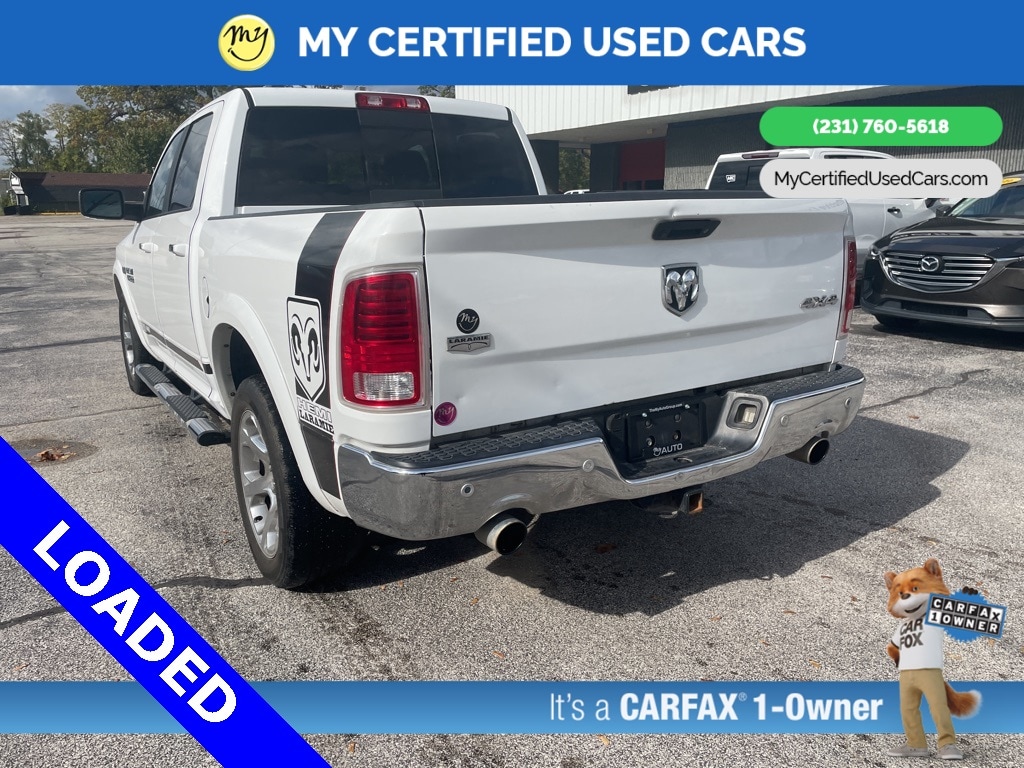 *SUPER BUY* **2017 RAM 1500 LARAMIE 4WD** *VERY CLEAN*, *FULLY SERVICED*, **REMOTE START*, **HEATED STEERING WHEEL*, *LEATHER HEATED/COOLED POWER SEATS*, Heated Second Row Seats,* *APPLE CARPLAY & ANDROID AUTO*, *BACKUP SENSORS*, *NAVIGATION SYSTEM*, *PREMIUM SOUND*, *REARVIEW CAMERA*, **Memory seat, Pedal memory,** Quick Order Package 26H Laramie. MY Certified Used Cars of Muskegon is your #1 choice in Michigan to get the BEST PRICE on used vehicles and BEST value for your trade. The MY Certified Used Cars team is ready to provide you with a world-class experience, ensuring that you find the perfect vehicle that fits all your needs. Every vehicle has been through a full safety inspection completed by certified technicians and fully detailed. We sell many makes and models, Pre-Owned Vehicles with years from 2025-2024-2023-2022-2021-2020-2019-2018-2017-2016-2015-2014-2013-2012-2011-2010-2009-2008-2007 and all makes Audi, BMW, Chevrolet, Toyota, Volkswagen, Kia, Hyundai, Mercedes, Dodge, Chrysler, Jeep, Ram, Lincoln, Honda, Subaru, and many models like Bronco, Bronco Sport, Edge, Escapes, Expedition, Explorer, Fusions, Focus, Flex, F-150 Series, F-250, F-350, Super Duty Diesel Trucks, Maverick, Mustang MACH-E, Mustang, Ranger, Transit, Wrangler, Grand Cherokee, Grand Cherokee L, Wagoneer, Gladiator, Grand Caravan, RAM, RAM HEMI, and more. Take advantage of our VIP experience by calling 231-760-5618 to schedule a test drive. Read our customer reviews at www.mycertifiedusedcars.com/testimonials or view our entire selection of preowned vehicles at www.mycertifiedusedcars.com, or stop by today, located at 3692 Airline Rd. Muskegon, MI 49444. CARFAX One-Owner. Bright White Clearcoat 2017 Ram 1500 Laramie 4WD 8-Speed Automatic HEMI 5.7L V8 Multi Displacement VVT