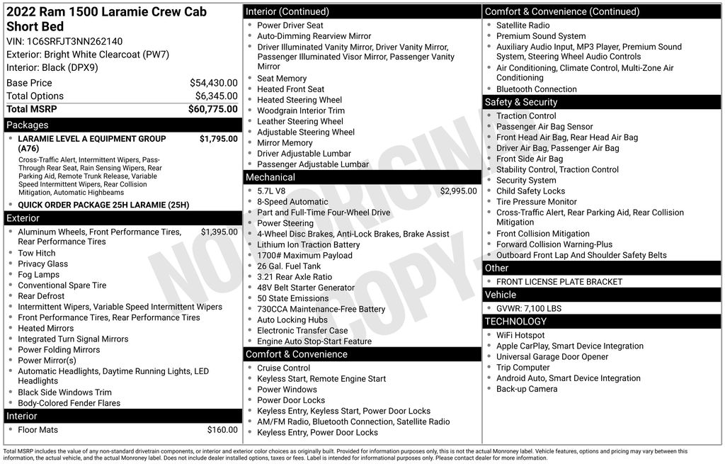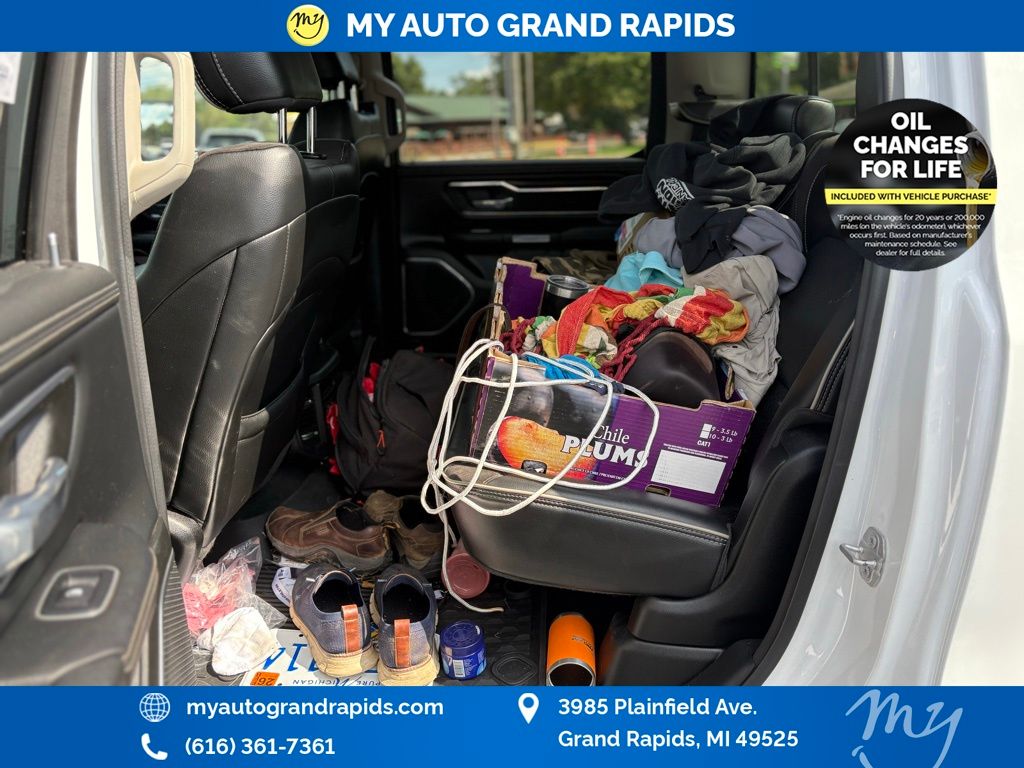 LOADED with OPTIONS and *OIL CHANGES for LIFE*,1500 Laramie, 4D Crew Cab, HEMI 5.7L V8 Multi Displacement VVT, 4WD, *APPLE CARPLAY & ANDROID AUTO*, *HANDSFREE BLUETOOTH*, *HEATED SEATS*, *LEATHER HEATED POWER SEATS*, *POWER SEATS*, *REARVIEW CAMERA*, *REMOTE START*, Auto High Beam Headlamp Control, Driver Seat Memory, Foam Bottle Insert (Door Trim Panel), Heated Front Seats, Laramie Level A Equipment Group (DISC), ParkSense Front/Rear Park Assist w/Stop, ParkView Rear Back-Up Camera, Quick Order Package 25H Laramie, Radio: Uconnect 5 W w/8.4" Display, Rain Sensitive Windshield Wipers, Remote Tailgate Release, Ventilated Front Seats, Wheels: 20" x 9" Premium Paint/Polished. My Auto Grand Rapids is your #1 choice in Michigan to get the BEST PRICE on used vehicles and BEST value for your trade. The My Auto Grand Rapids team is ready to provide you with a world-class experience, ensuring that you find the perfect vehicle that fits all your needs. Every vehicle has been through a full safety inspection, completed by certified technicians and fully detailed. We sell many makes and models with years from 2025, 2024, 2023, 2022, 2021, 2020, 2019, 2018, 2017, 2016, 2015, 2014, 2013, 2012, 2011, 2010, 2009 and used makes Audi, BMW, Chevrolet, Toyota, Volkswagen, Kia, Hyundai, Mercedes, Dodge, Chrysler, Jeep, Ram, Lincoln, Ford, Nissan, Honda, Mitsubishi, Subaru, and many models like Altima, Murano, Pathfinder, Kicks, Taos, Beetle, Jetta, Outlander, Eclipse Sport, Frontier, Rogue, Atlas, Versa, and more. Take advantage of our VIP experience by calling 616-361-7361 to schedule a test drive. Read our customer reviews and view our entire selection of preowned vehicles at www.myautograndrapids.com, or stop by today, located at 3985 Plainfield Ave NE, Grand Rapids, MI 49525. Priced below KBB Fair Purchase Price!