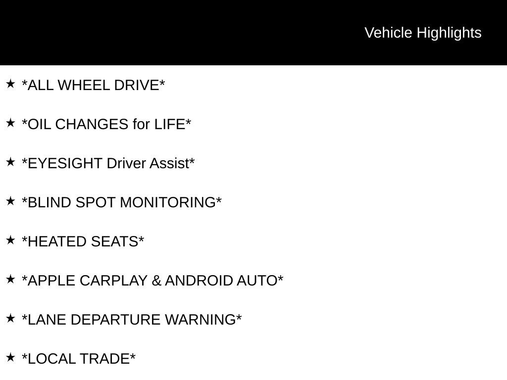 My Lakeshore Subaru is your #1 choice in Michigan to get the BEST PRICE on used vehicles and BEST value for your trade. The My Lakeshore Subaru team is ready to provide you with a world-class experience, ensuring that you find the perfect vehicle that fits all your needs. Every vehicle has been through a full safety inspection completed by certified technicians and fully detailed. We sell many makes and models, Certified Pre-owned Subaru’s and Pre-owned Vehicles with years from 2025-2024-2023-2022-2021-2020-2019-2018-2017-2016-2015-2014-2013-2012-2011-2010-2009-2008-2007 and all makes Audi, BMW, Chevrolet, Toyota, Volkswagen, Kia, Hyundai, Mazda, Mercedes, Dodge, Chrysler, Jeep, Ram, Lincoln, Honda, Subaru, and many models like Crosstrek, Outback, Forester, Accent, Legacy, WRX, BRZ, Solterra, and more. Take advantage of our VIP experience by calling 231-867-6957 to schedule a test drive. Read our customer reviews and view our entire selection of preowned vehicles at www.mylakeshoresubaru.com, or stop by today, located at 16605 112th Ave, Nunica, MI 49448. Recent Arrival! 21/27 City/Highway MPG