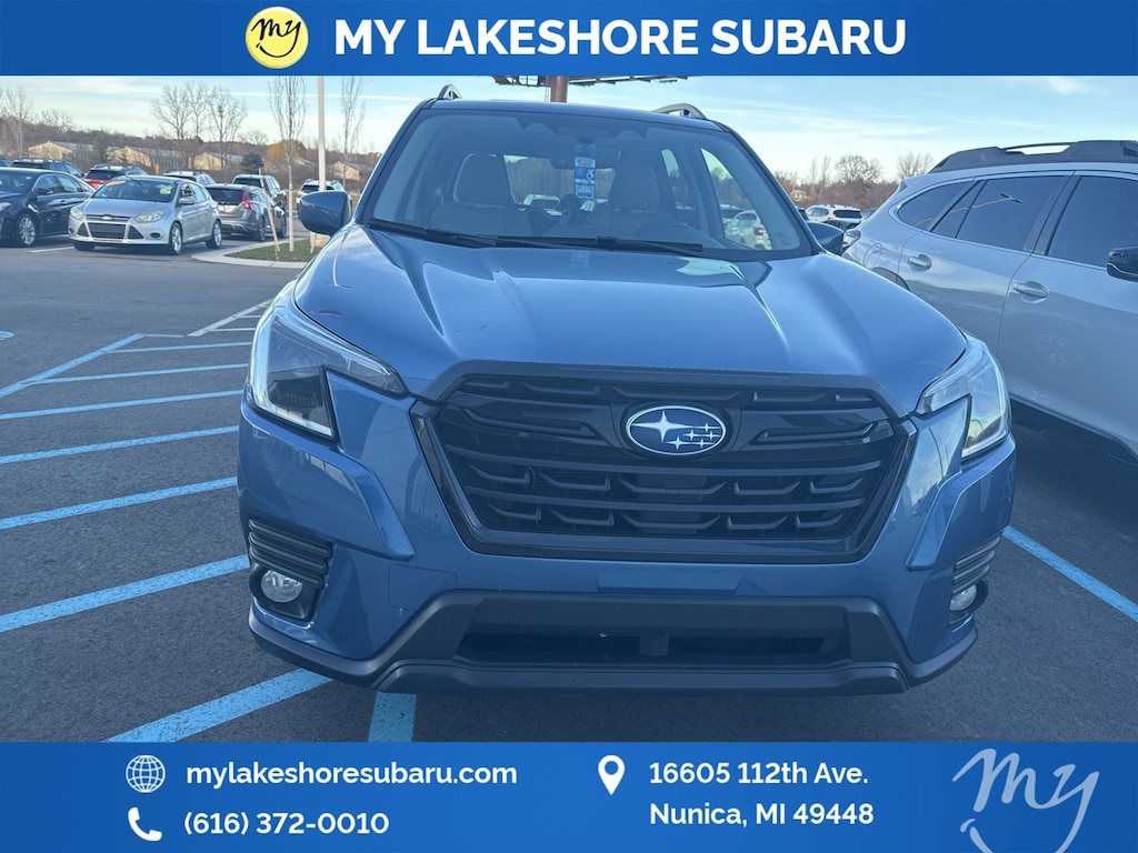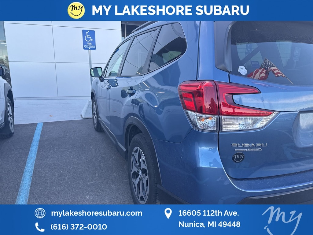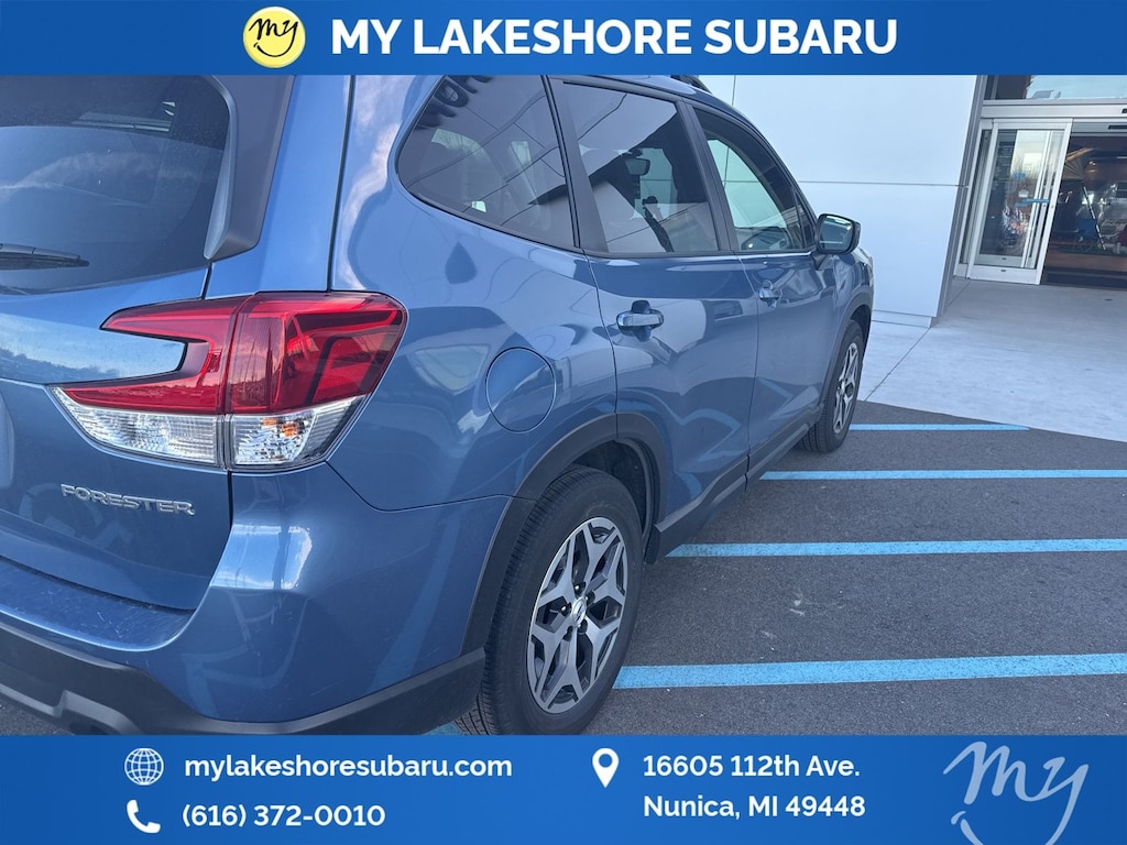Forester Premium, Horizon Blue Pearl, *ALL WHEEL DRIVE*, *APPLE CARPLAY & ANDROID AUTO*, *BLIND SPOT MONITORING*, *EYESIGHT Driver Assist*, *HEATED SEATS*, *LANE DEPARTURE WARNING*, *OIL CHANGES for LIFE*, *PANORAMIC MOONROOF*, Blind Spot Detection w/RCTA & Power Rear Gate, Blind-Spot Detection (BSD), Driver's Seatback Divided Pocket, Dual USB Charge Ports, EyeSight System, Multi-Function High Grade Display, Power Rear Gate. Certified. Horizon Blue Pearl 2023 Subaru Forester Premium AWD Lineartronic CVT 2.5L 4-Cylinder DOHC 16V