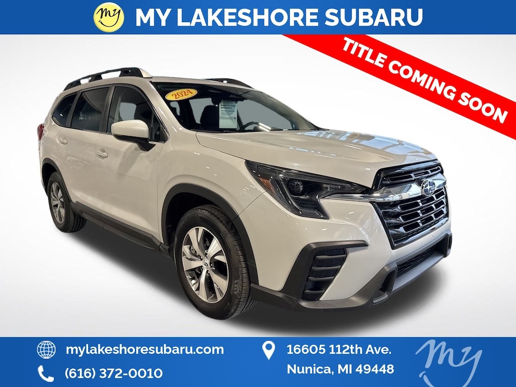 Ascent Premium, Crystal White Pearl, *ALL WHEEL DRIVE*, *APPLE CARPLAY & ANDROID AUTO*, *EYESIGHT Driver Assist*, *HEATED SEATS*, *LANE DEPARTURE WARNING*, *OIL CHANGES for LIFE*. Certified. Crystal White Pearl 2024 Subaru Ascent Premium AWD Lineartronic CVT 2.4L 4-Cylinder DOHC 16V