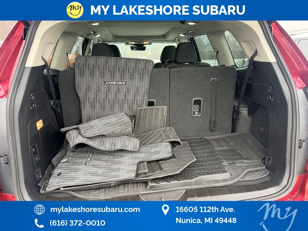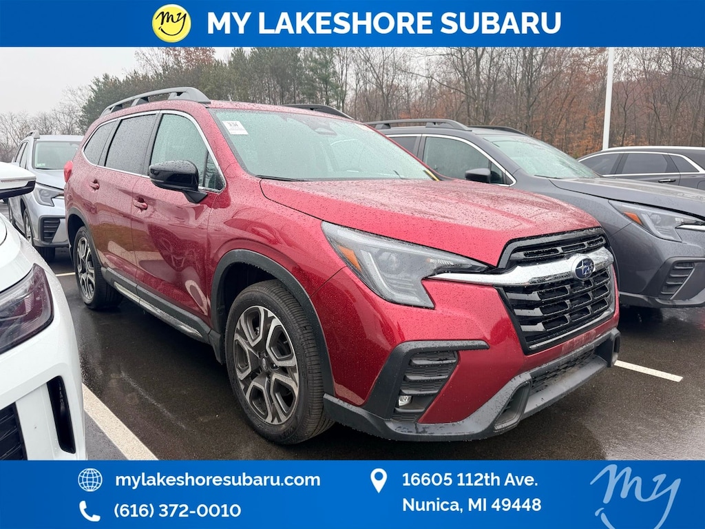 Ascent Limited, Crimson Red Pearl, *ALL WHEEL DRIVE*, *APPLE CARPLAY & ANDROID AUTO*, *EYESIGHT Driver Assist*, *LANE DEPARTURE WARNING*, *LEATHER HEATED POWER SEATS*, *OIL CHANGES for LIFE*, *PANORAMIC MOONROOF*, *REAR BUCKET Seats*, *REARVIEW CAMERA*, Cabin Connect, Crystal Black Power-Folding Exterior Power Mirrors, Panoramic Power Moonroof w/UV/Drk Tint Dual Glass, Radio: Subaru STARLINK 11.6" Multimedia Nav System, Retractable Cargo Area Cover, Surround View Monitor System, Technology Package. Certified. Crimson Red Pearl 2024 Subaru Ascent Limited AWD Lineartronic CVT 2.4L 4-Cylinder DOHC 16V