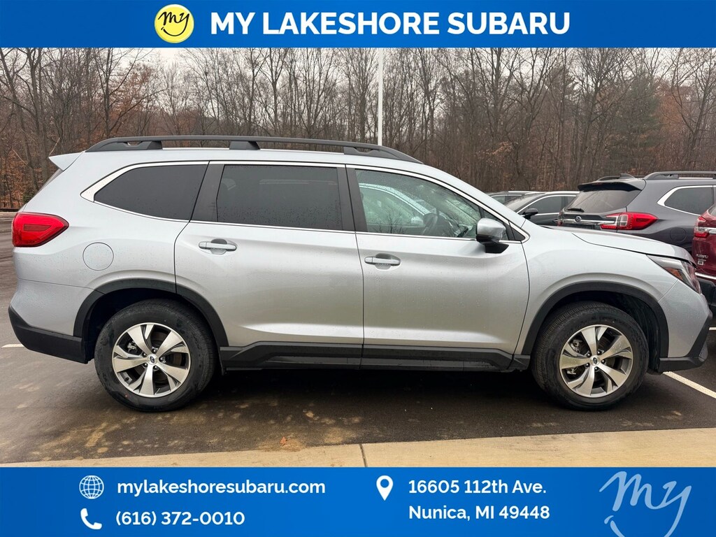 Ascent Premium, Ice Silver Metallic, *ALL WHEEL DRIVE*, *APPLE CARPLAY & ANDROID AUTO*, *EYESIGHT Driver Assist*, *HEATED SEATS*, *LANE DEPARTURE WARNING*, *OIL CHANGES for LIFE*. Certified. Ice Silver Metallic 2024 Subaru Ascent Premium AWD Lineartronic CVT 2.4L 4-Cylinder DOHC 16V