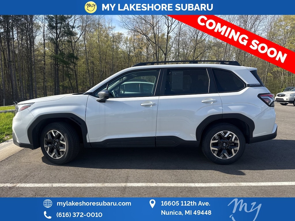 Forester Premium, Crystal White Pearl, *ALL WHEEL DRIVE*, *APPLE CARPLAY & ANDROID AUTO*, *BACKUP CAMERA*, *EYESIGHT Driver Assist*, *HEATED SEATS*, *LANE DEPARTURE WARNING*, *OIL CHANGES for LIFE*, *PANORAMIC MOONROOF*, Automatic Emergency Steering, Blind-Spot Detection (BSD)/RCTA System, Power Rear Gate, Power Rear Gate & Blind Spot Detection w/RCTA. Certified. Crystal White Pearl 2025 Subaru Forester Premium AWD Lineartronic CVT 2.5L 4-Cylinder DOHC 16V