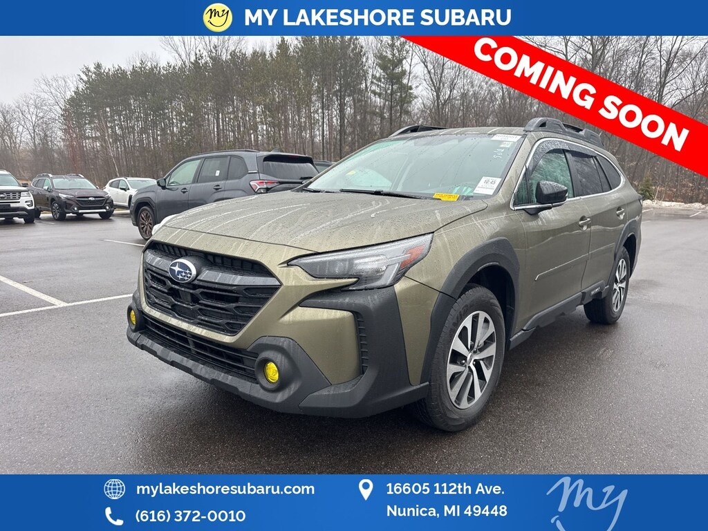 Outback Premium, Autumn Green Metallic, *ALL WHEEL DRIVE*, *APPLE CARPLAY & ANDROID AUTO*, *BACKUP CAMERA*, *BLIND SPOT MONITORING*, *EYESIGHT Driver Assist*, *HEATED STEERING WHEEL*, *LANE DEPARTURE WARNING*, *LEATHER HEATED POWER SEATS*, *MOONROOF*, *OIL CHANGES for LIFE*, *PREMIUM SOUND*, Blind Spot Detection (BSD), BSD w/RCTA & Keyless Access & Push Button Start, Hands-Free Power Rear Gate, Keyless Access w/Push Button Start, Rear Cross Traffic Alert (RCTA). Certified. Autumn Green Metallic 2025 Subaru Outback Premium AWD CVT Lineartronic 2.5L 4-Cylinder DOHC 16V