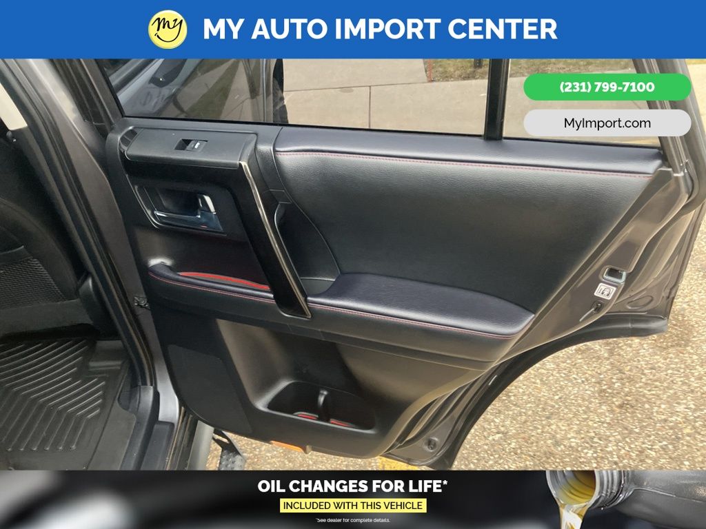 The exterior of this 4Runner is finished in a sleek Gray color, complemented by a sporty and rugged design. The TRD Off-Road Premium package adds a host of premium features, including a power moonroof, heated side mirrors, and unique off-road alloy wheels. Step inside, and you'll be greeted by a well-appointed interior featuring Softex synthetic leather upholstery, heated front seats, and a premium audio system with navigation.